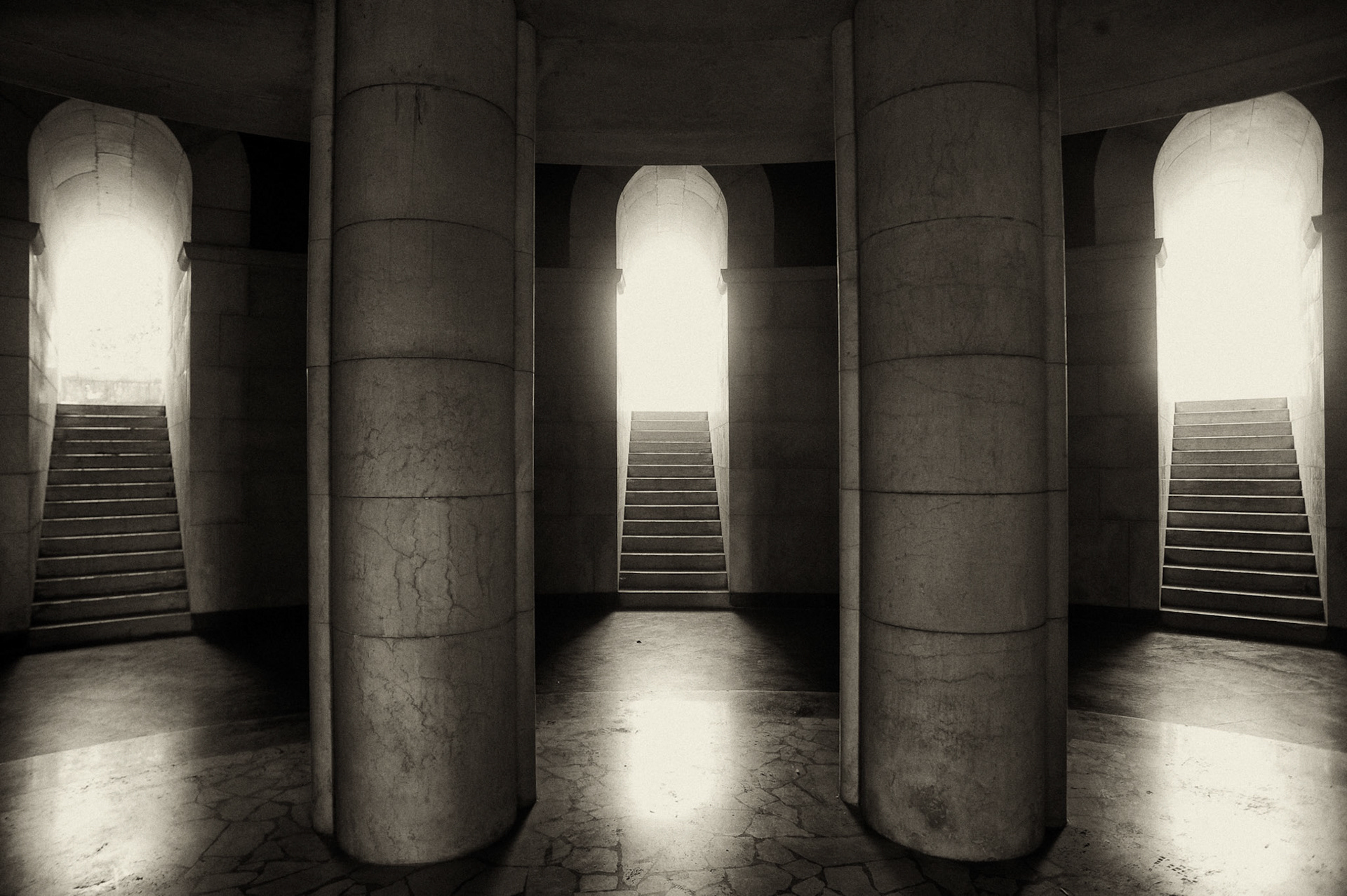 La poetica di Gabriele D'Annunzio, nelle sue contraddizioni, nella sua simmetria imprevedibile. Una geometria delle emozioni, come nei suoi romanzi, ossessivi nella ricerca della perfetta narrazione di sé. Un luogo vuoto, solo un'ombra di viandante - eco nietzschano - e qualche volto impietrito - la bellezza cui manca l'aria. Scatti effettuati al Vittoriale degli Italiani. Gabriele D'Annunzio's poetry in its contradictions, in its unpredictable asymmetry. A geometry of emotions, just like in his novels, obsessive in the seek for a perfect narration of oneself. An empty space, just a voyager's shadow - echoing Nietzsche's steps - and some pietrified faces. A breathless beauty. All pictures shot at Vittoriale degli Italiani, the poet's late residence.